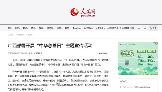 近日,自治区民政厅等10部门联合印发实施方案,定于8月至10月,在全区开展以“汇聚向善力量 共创美好生活”为主题的第十个“中华慈善日”主题宣传暨广西“慈善一日捐”活动。