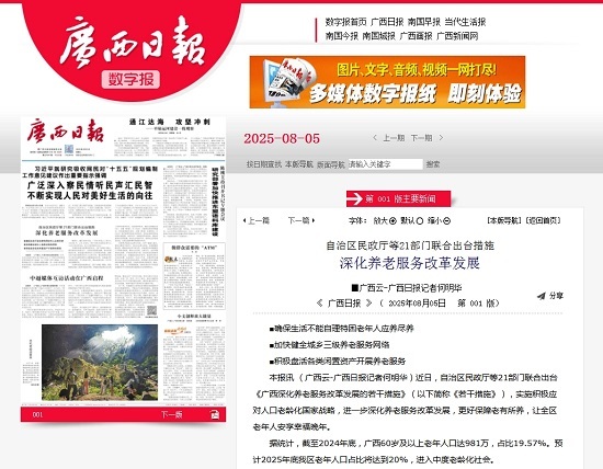 本报讯 (广西云-广西日报记者何明华)近日,自治区民政厅等21部门联合出台《广西深化养老服务改革发展的若干措施》(以下简称《若干措施》),实施积极应对人口老龄化国家战略,进一步深化养老服务改革发展,更好保障老有所养,让全区老年人安享幸福晚年。