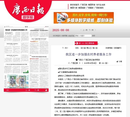 据了解,广西是人口老龄化发展速度较快的省区之一,农村老龄化程度高,养老服务难题突出,急需进一步加强推进农村养老服务工作。