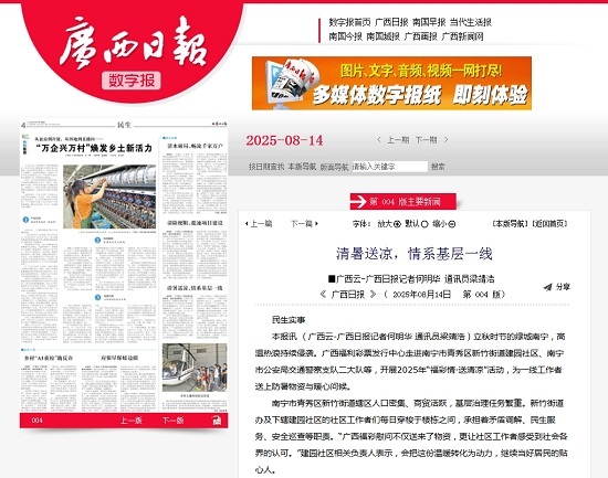 本报讯 (广西云-广西日报记者何明华 通讯员梁靖浩)立秋时节的绿城南宁,高温热浪持续侵袭。广西福利彩票发行中心走进南宁市青秀区新竹街道建园社区、南宁市公安局交通警察支队二大队等,开展2025年“福彩情·送清凉”活动,为一线工作者送上防暑物资与暖心问候。