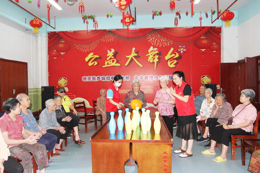 广西壮族自治区来宾市红水河护养院组织入住老人开展互动游戏。供图/来宾市民政局