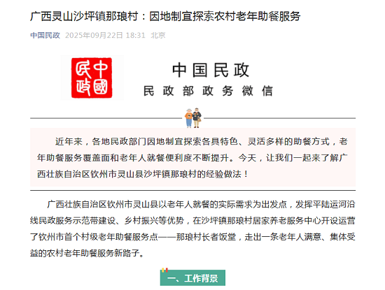近年来,各地民政部门因地制宜探索各具特色、灵活多样的助餐方式,老年助餐服务覆盖面和老年人就餐便利度不断提升。今天,让我们一起来了解广西壮族自治区钦州市灵山县沙坪镇那琅村的经验做法!
