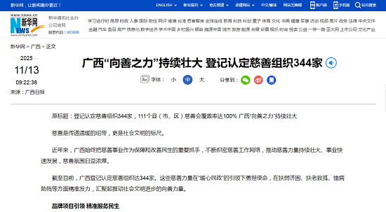 原标题:登记认定慈善组织344家,111个县(市、区)慈善会覆盖率达100% 广西“向善之力”持续壮大