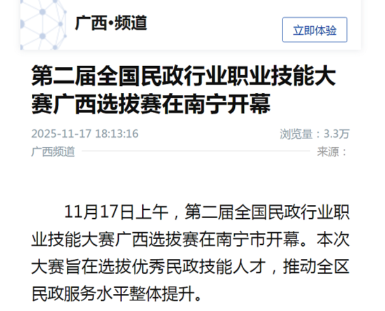 民政工作关系民生、连着民心,民政技能人才是支撑民政事业高质量发展的重要力量。广西高度重视民政技能人才队伍建设,持续推进知识型、技能型、创新型人才培养,取得积极成效。此次大赛既是对全区民政技能人才队伍建设成果的集中检验,也是落实广西“暖心民政”三年行动计划的具体举措,将进一步发挥榜样引领作用,提升民政服务温度与效能。