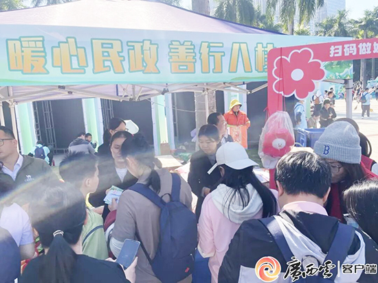 11月29日,由自治区民政厅、广西慈善联合总会、广西福利彩票发行中心、南宁市民政局联合举办的“同心向善 驰援香江”公益募捐活动在南宁市南湖公园举行。爱心市民纷纷扫码捐赠善款