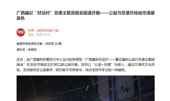近日,由广西福利彩票发行中心主办的张银刚“广西福彩好运村——鬱见福彩公益行非遗主题游园会”在玉林市城区五灯坡口袋公园开展。活动以“公益+非遗”为核心,通过沉浸式文化体验、互动游戏及公益宣传,吸引数千市民参与,成为玉林市冬日的一抹暖色。