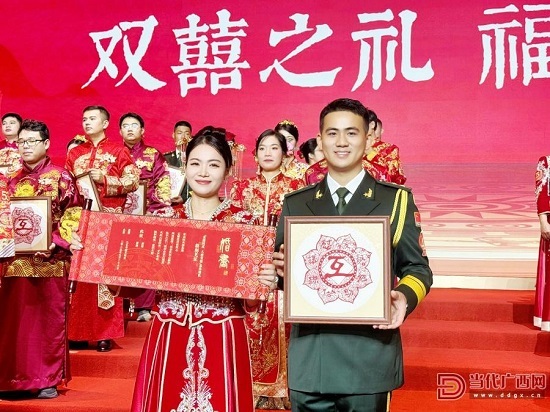 这样的故事,正在广西各地不断上演。在柳州,城中区打造的“百里柳江文化带,东门城楼明制传统集体婚礼”公益文化品牌,增强了群众对婚俗改革的认同与支持;在桂林,“和谐和睦和美、共建幸福家庭”移风易俗宣传大巡演活动,将优秀婚俗文化产品和服务宣讲送到千家万户。广西各地还依托多民族聚居特点,深挖壮、侗、苗等世居民族婚姻习俗和礼仪,利用元旦、七夕、国庆等时机,举办集体婚礼,开展特色颁证服务。
