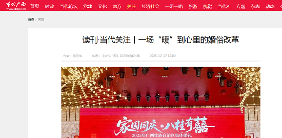 当前,广西的婚俗改革正以润物无声的力量,让“过日子才是婚姻本质”的理念深入人心。当奢华攀比让位于真挚相守,当高额彩礼转变为生活底气,文明新风不仅重塑着八桂大地的婚恋图景,更以家庭的幸福和睦,为社会的和谐发展注入温暖而持久的力量。