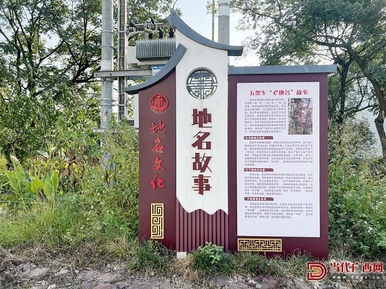 广西桂林市兴安县溶江镇五架车村地名故事牌。付秋红 摄