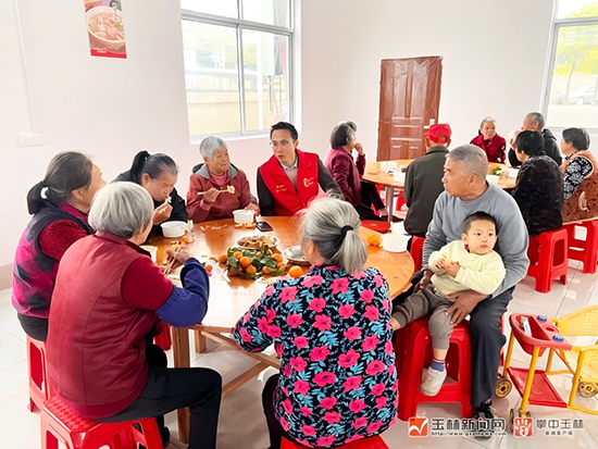 老人们围坐在一起,一边享用着热腾腾的饭菜,一边聊着家常。玉林新闻网-玉林日报记者 梁敏华 摄