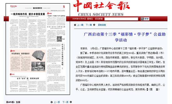 本报讯 2月1日,广西福彩中心启动第十三季“福彩情·学子梦”公益助学活动。