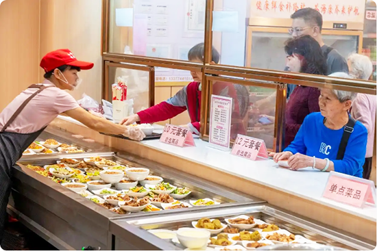 3月24日,广西梧州市万秀区蓝天社区苍海怡然健康食堂内,老人们在开心用餐。近年来,梧州市聚焦老年人“吃饭难”痛点,大力推进社区老年助餐服务体系建设,以“小饭碗”托起“大民生”,该市苍海投资集团创新推出老年助餐服务模式,通过打造苍海怡然健康食堂等标准化健康食堂,让老人在家门口就能吃到实惠卫生、搭配合理的暖心餐,稳稳托起幸福“夕阳红”。