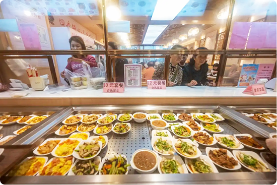 3月24日,广西梧州市万秀区蓝天社区苍海怡然健康食堂内,老人们在排队取餐。