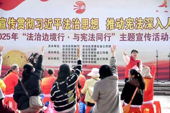 2025年12月4日是第十二个国家宪法日。12月10日,自治区民政厅联合自治区党委社会工作部、自治区司法厅、自治区妇联以及崇左市、凭祥市相应部门在凭祥市凭祥镇新华社区开展2025年“法治边境行·与宪法同行”主题宣传活动。自治区民政厅党组成员、副厅长蒋海东以及相关部门负责同志出席活动。