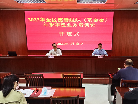 2023年3月20日至24日,自治区民政厅在南宁举办全区慈善组织(基金会)年报年检业务培训班。本次培训班分三期进行,分别对负责人(会长、理事长、秘书长或专职副理事长)、年报年检工作人员进行业务培训,全区慈善组织(基金会)约有250人参加培训。