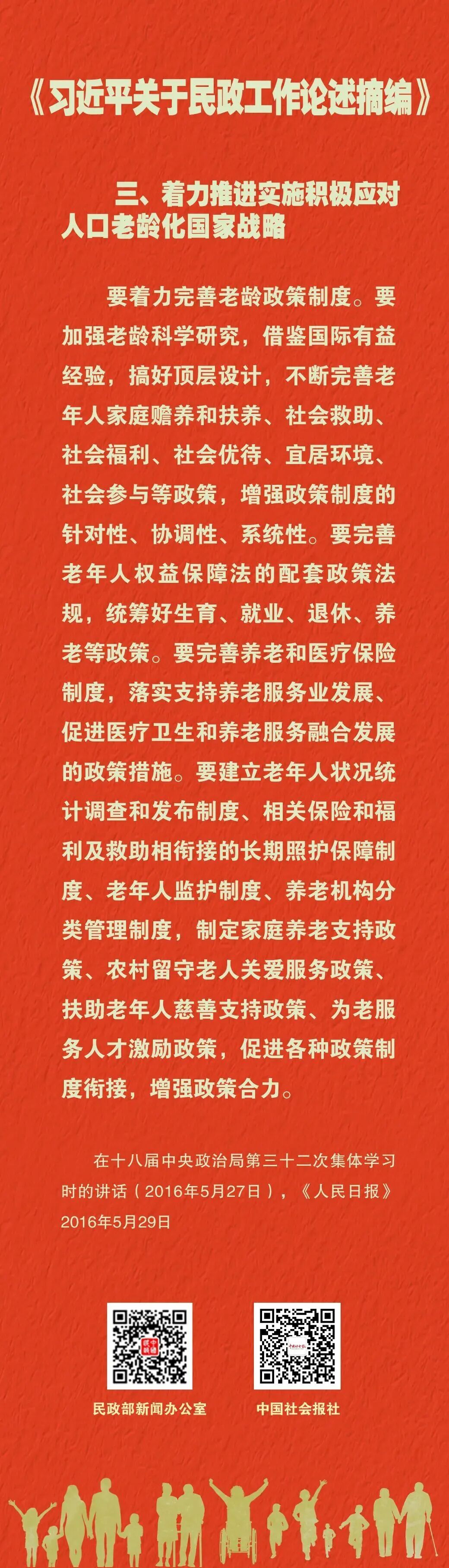 《习近平关于民政工作论述摘编》(以下简称《论述摘编》)已出版发行。《论述摘编》全面反映习近平总书记对新时代民政工作的深邃思考和重大部署,为深入学习领会习近平总书记重要论述提供了权威读本和最新教材。