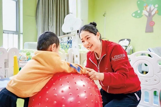 做好儿童福利工作,是民政工作的重要职责之一。近年来,各级民政部门不断完善儿童福利制度和关爱服务体系,努力让所有孩子都能感受到党和政府的温暖,过上幸福美好生活。图为2025年4月22日,在宁夏回族自治区儿童福利院,护理员正在帮助孩子进行感知觉训练。 民政部供图