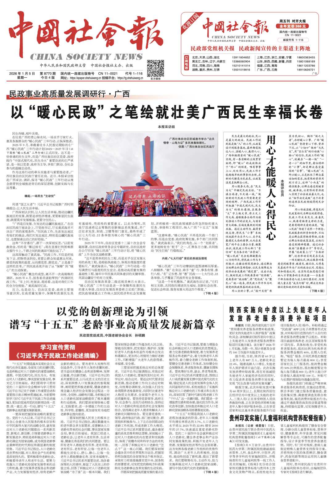 征程万里风正劲,重任千钧再出发。广西将继续厚植“暖心底色”,锚定“民心坐标”,不断拓展“暖心民政”的广度、深度与温度,以民生之“暖”催化发展之“变”,奋力谱写中国式现代化广西篇章。